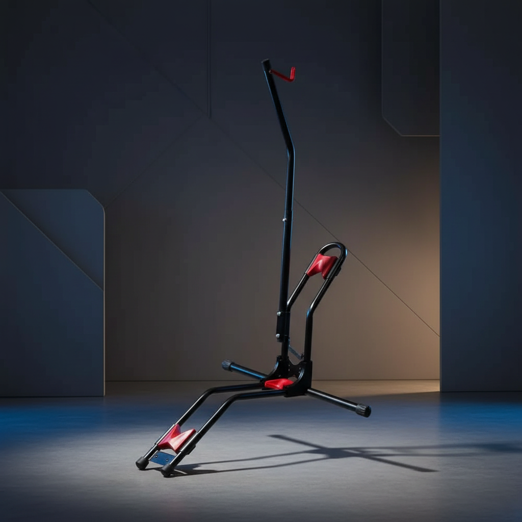 A tartós vas‑műanyag szerkezet hosszú élettartamot biztosít, így a kerékpár mindig biztonságosan áll, anélkül hogy eldőlne vagy megsérülne. A letisztult fekete szín modern, professzionális megjelenést ad, amely bármilyen garázsban, műhelyben vagy üzletben jól mutat.